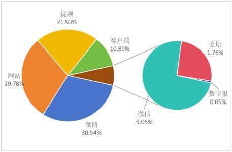 正在消息渠道上,“消费维权”类消息渠道次要有微博、网坐、视频、客户端、微信、论坛、数字报等。此中,微博消息量最高,占比30。54%,其次是网坐,占比29。78%;第三是视频,占比21。93%。